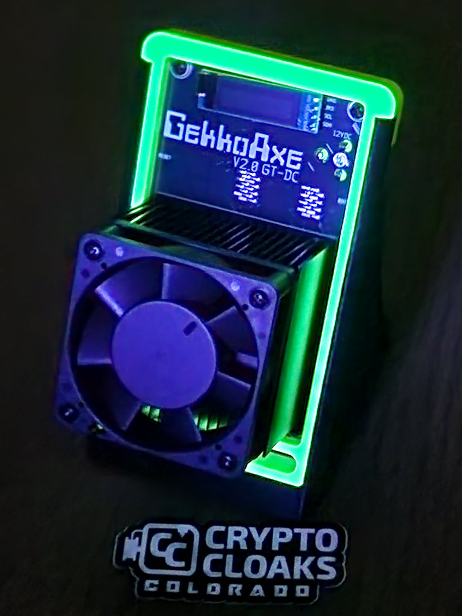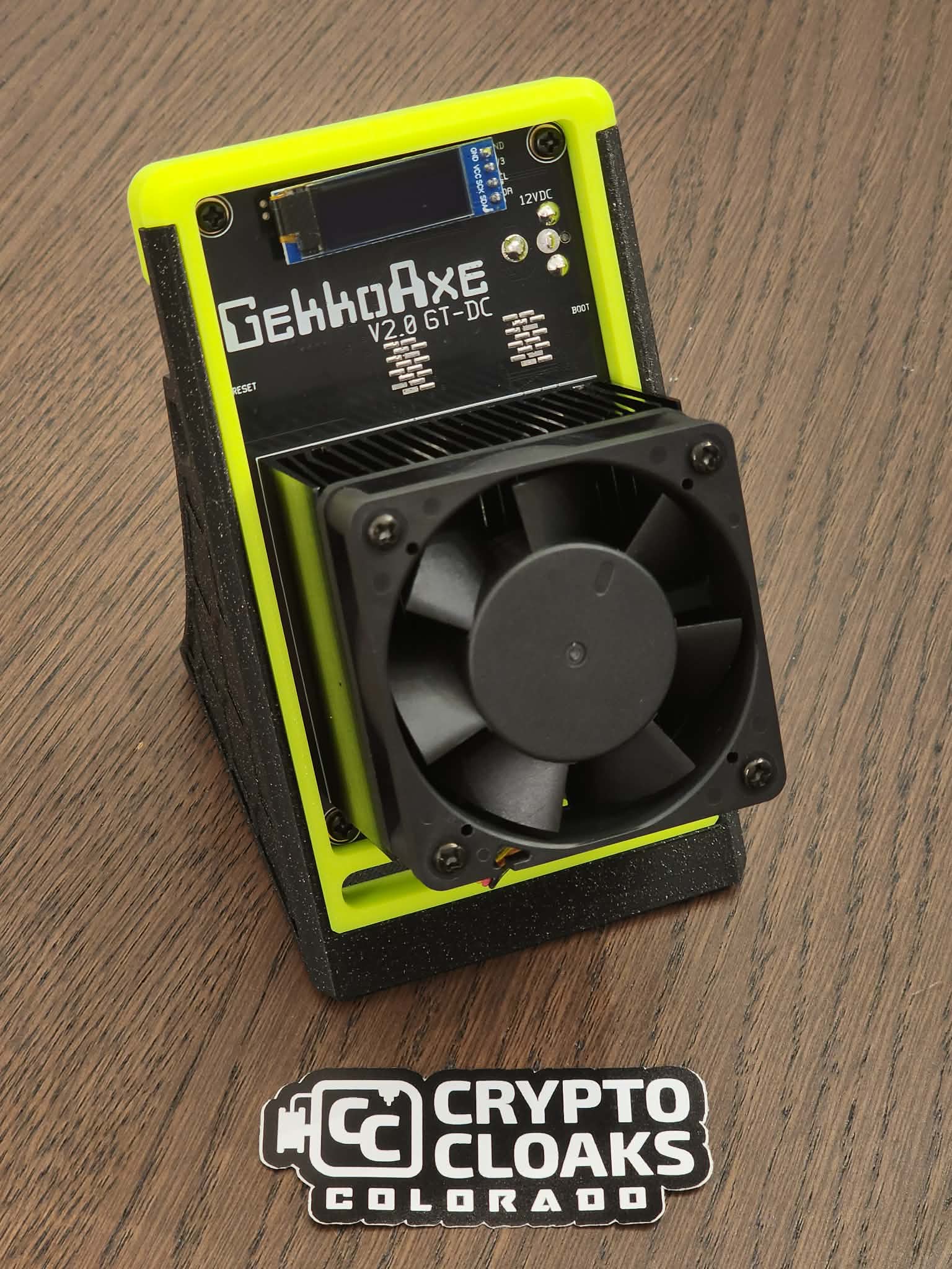 Mechanically compatible with current designs of the Bitaxe Gamma Turbo (GT), but with a custom designed circuit and board by GekkoScience, and a custom silent but efficient fan/heatsink combination designed with The Solo Mining Co. This hardware was designed and tested to be compatible with current versions of AxeOS.