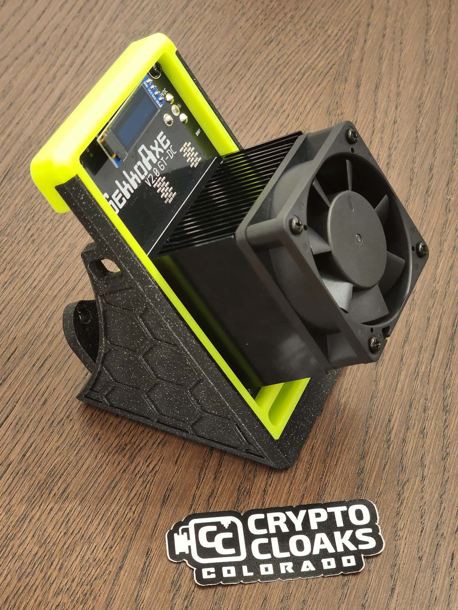 – CryptoCloaks stand with mounts for rear cooling fan (it glows!)